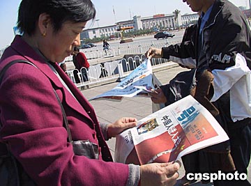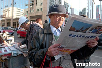組圖:北京市民關(guān)注“神舟”五號成功發(fā)射