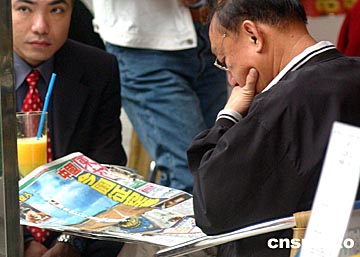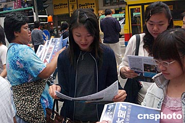 香港市民爭看號(hào)外!吧裰邸蔽逄(hào)飛船十月十五日順利升空,香港傳媒特發(fā)號(hào)外,圖為香港市民在街頭爭看號(hào)外。中新社記者:錢興強(qiáng)