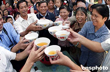 中新社福州十月十六日電 題:黃春平鄉(xiāng)親歡呼“神舟”五號飛天