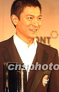 2003年萬寶龍國際藝術(shù)贊助大獎十月十七日在香港舉行頒獎儀式,香港明星劉德華榮獲大獎。中新社記者:錢興強