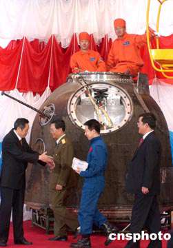 十月十八日,中國神舟五號載人飛船回收艙搭載物品開艙儀式在中國航天科技集團公司北京空間技術研制試驗中心舉行。中國首位航天員楊利偉向相關部門代表轉(zhuǎn)交從太空歸來的“貴賓”。搭載物品中包括來自臺灣地區(qū)的作物種子。中新社記者:張煒