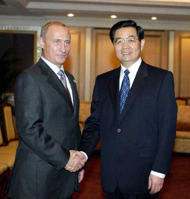 普京表示完全贊同胡錦濤對當前兩國關(guān)系的看法。他說,《俄中睦鄰友好合作條約》為俄中發(fā)展新世紀戰(zhàn)略協(xié)作伙伴關(guān)系奠定了法律基礎(chǔ)。俄中關(guān)系發(fā)展順利,雙邊貿(mào)易增長迅速,在國際事務(wù)中的磋商、協(xié)調(diào)和合作不斷擴大。從各方面看,俄中兩國關(guān)系中不存在任何不能解決的問題和障礙,所需要的就是更好、更快地開展友好合作。普京還熱烈祝賀中國成功進行首次載人航天飛行。