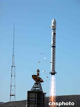 約十三分鐘后,西安衛(wèi)星測控中心傳來的數(shù)據(jù)表明,中巴地球資源衛(wèi)星0二星已順利進入高度為七百七十八公里、傾角為九十八點五度的太陽同步軌道;鸺^續(xù)飛行約四十秒后,“創(chuàng)新一號”小衛(wèi)星與火箭分離,成功進入預(yù)定軌道。
