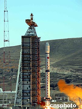 中巴地求資源衛(wèi)星0二星和“創(chuàng)新一號”小衛(wèi)星二十一日在太原衛(wèi)星發(fā)射中心由“長征四號乙”運(yùn)載火箭一箭雙星成功發(fā)射升空。中新社記者 孫自法 攝