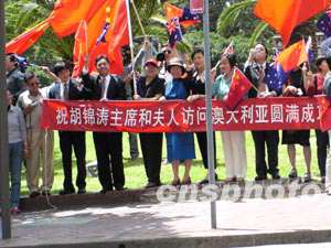 悉尼華人華僑在胡錦濤主席下榻的酒店前迎候。中新社記者 劉雨生 攝