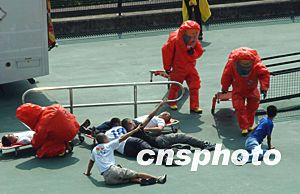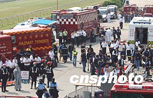 來自保安局、消防處、醫(yī)院管理局、醫(yī)療輔助隊(duì)、民安隊(duì)、天文臺(tái)、衛(wèi)生署和賽馬會(huì)共1300多人參與此次演習(xí)。中新社記者:洪少葵