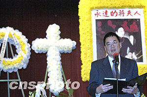 美西時間十月二十六日晚,美國加州圣尼維爾市僑界舉辦追悼會,悼念二十三日晚在紐約去世的蔣介石遺孀宋美齡。圖為宋美齡弟弟宋子安的二兒子宋仲虎在追悼會上發(fā)言,悼念姑媽。作者:陳鋼