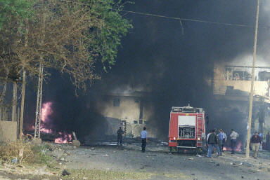 10月27日,國(guó)際紅十字會(huì)駐巴格達(dá)辦事處前發(fā)生了一起汽車爆炸案。強(qiáng)烈的爆炸聲響徹了巴格達(dá)市,爆炸產(chǎn)生的煙柱沖向了天空。兩輛汽車完全被毀;行人四處逃散,多輛救護(hù)車也趕到了現(xiàn)場(chǎng)。