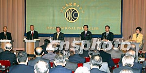 日本眾議院選舉將于28日正式開(kāi)鑼,日本政界六個(gè)政黨的首領(lǐng)(左起依次為保守新黨代表熊谷弘、公明黨代表神崎武法、自民黨總裁小泉純一郎、民主黨代表菅直人、共產(chǎn)黨委員長(zhǎng)志位和夫、社民黨黨首土井多賀子)27日在日本記者俱樂(lè)部共聚一臺(tái)唇槍舌劍。作者:王健