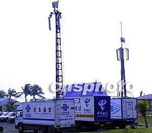 在博鰲亞洲論壇國際會議中心廣場,只見中國電信、中國移動、中國聯(lián)通三大電信運營商的保障車,齊齊停在停車場,旁邊設(shè)置了信號加強站,他們將確保論壇期間通訊二十四小時暢通。