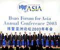 | 博鰲亞洲論壇2003年會的主題為:亞洲尋求共贏、合作促進發(fā)展。在該主題下,包括中國國家政府領(lǐng)導(dǎo)人在內(nèi)的各國領(lǐng)袖及企業(yè)精英聚會博鰲,討論亞洲經(jīng)濟展望、自由貿(mào)易安排、亞洲區(qū)域經(jīng)濟合作等議題。此次年會還設(shè)立若干個企業(yè)界十分關(guān)注的專題演講與對話會,內(nèi)容主要涉及數(shù)字亞洲、亞洲金融合作、人力資源開發(fā)、醫(yī)藥、亞洲經(jīng)濟結(jié)構(gòu)調(diào)整等…… |