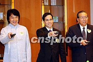 香港長江集團在香港公益金成立35周年之際,舉辦“長和愛心為公益”籌款活動,圖為10月30日,長江實業(yè)董事總經(jīng)理兼副主席李澤巨、公益金籌募委員會聯(lián)席主席李業(yè)廣和影星成龍出席記者會。作者:洪少葵