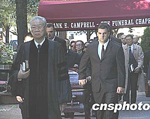 宋美齡家屬,包括孔令儀女士、蔣方智怡女士及蔣友常等人,紐約當(dāng)?shù)貢r間30日晨間陸續(xù)到了宋美齡停靈的康貝爾殯儀館,準(zhǔn)備將宋美齡移靈至紐約上州的芬克里夫墓園。