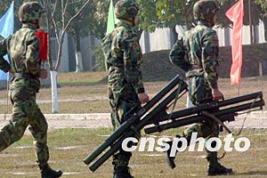 士兵進(jìn)行單兵防化火箭對固定目標(biāo)射擊演練。中新社記者:錢興強(qiáng)