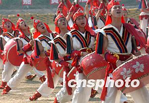 駐港部隊(duì)表演威風(fēng)鑼鼓。中新社記者:錢興強(qiáng)