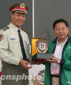 香港教育工作者聯(lián)會人士來到駐港部隊(duì)深圳基地參觀,圖為駐港部隊(duì)向該會贈送紀(jì)念品。中新社記者:黃少華