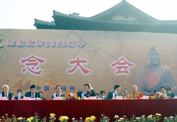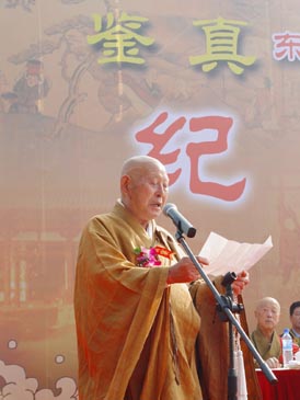 揚州市市長季建業(yè)在會上致辭。國家宗教事務(wù)局局長葉小文、日本奈良唐招提寺益田快范長老、臺灣佛光山開山宗長星云、中日友好協(xié)會副會長文遲等講了話。揚州大明寺方丈能修也在會上致了辭。