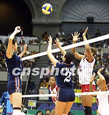 中國(guó)女子排球隊(duì)十一月三日下午在日本鹿兒島進(jìn)行的世界杯賽事中,直落三局輕取剛剛露出“黑馬”之相的多米尼加隊(duì)。中國(guó)女排拿手的快攻戰(zhàn)術(shù)令對(duì)手防不勝防。中新社記者:王健