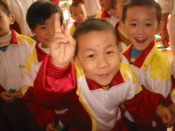 別看他們是一幫聾兒,但他們的表演欲都很強。尤其在我們的攝影記者大漠的攝影機前,他們顯得異常的興奮,拼命的往攝影機前面擠,沒有正常小孩在面對陌生人時,所表現(xiàn)出來的恐懼和躲避。也許,在他們的精神世界里,根本不存在什么丑惡與兇險,他們也不會為外界傳播的流言所干擾。他們與所有孩子一樣,渴求了解新鮮事物,比如,當(dāng)采訪團的記者王琳珊拿出一臺手提電腦給他們看時,便有一個聾人學(xué)生一直盯著電腦的顯示屏,神情的天真和專注讓人揪心,《嘉興日報》的記者拍下了這組鏡頭。