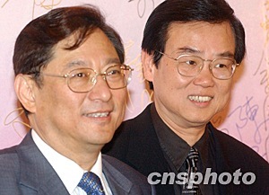 香港著名導(dǎo)演吳思遠(yuǎn)、明星黃百鳴11月8日晚出席在香港會展中心舉行的“2003中華小姐環(huán)球大賽”總決賽頒獎儀式。中新社記者:錢興強(qiáng)
