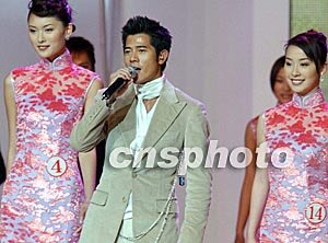 香港歌星郭富城11月8日晚在香港會展中心舉行的“2003中華小姐環(huán)球大賽”總決賽上演唱“中華小姐”環(huán)球大賽主題歌《絕對美麗》。中新社記者:錢興強(qiáng)