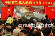 十一月九日,“神舟”五號返回艙亮相第五屆上海國際工業(yè)博覽會,中國首次載人航天飛行展也同時在滬展出,吸引了眾多市民一早就來到展會現場一睹“神五”的風采。作者:湯彥俊