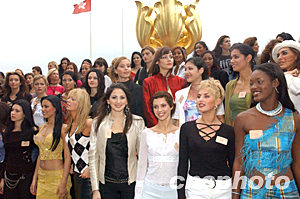 參加“第53屆世界小姐”選美大賽的110個國家和地區(qū)的佳麗,十一月九日首站來到香港參加慈善活動,圖為眾佳麗在金紫荊廣場合影留念。中新社記者:錢興強
