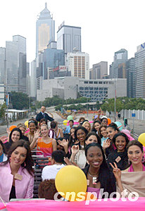 參加“第53屆世界小姐”選美大賽的110個國家和地區(qū)的佳麗,十一月九日乘車巡游香港島。中新社記者:錢興強(qiáng)