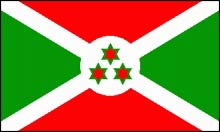 國旗:呈長方形,長與寬之比為3∶2。兩道交叉的白色寬條將旗面分成四個三角形,上下兩個相等,為紅色;左右兩個相等,為綠色。旗面中央是白色圓地,內(nèi)有三顆帶綠邊的紅色六角星,呈品字形排列。紅色象征為爭取自由而斗爭犧牲者的鮮血,綠色象征所期望的進步事業(yè),白色代表和平存在于人類中間。三顆星象征“團結(jié)、勞動、進步”,同時也代表布隆迪三個部族——胡圖族、圖西族、特瓦族,及其團結(jié)。