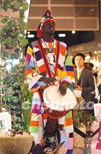 法國(guó)參展商出動(dòng)黑人樂(lè)手擊鼓高歌助興美容展。中新社記者:洪少葵