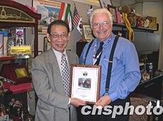 美西時(shí)間十一月十三日,中國駐舊金山總領(lǐng)事王云翔赴圣塔克拉拉郡政府辭行,拜會郡議員麥克修。王云翔任中國駐舊金山總領(lǐng)事四年。圖為麥克修議員(右)向王云翔(左)贈送紀(jì)念獎(jiǎng)牌,對他即將離任深表惋惜。作者:洪磊