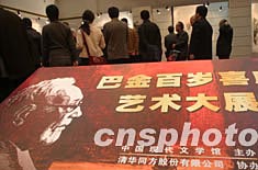 十一月十五日,作為向中國文學(xué)巨匠巴金先生百年華誕獻禮的《巴金百年喜慶藝術(shù)大展》在北京中國現(xiàn)代文學(xué)館隆重開幕。大展集中了五十位藝術(shù)大師精心創(chuàng)作的描繪巴金先生和他的作品及思想的作品,是近年來少有的藝術(shù)大聯(lián)展。中新社記者:史利