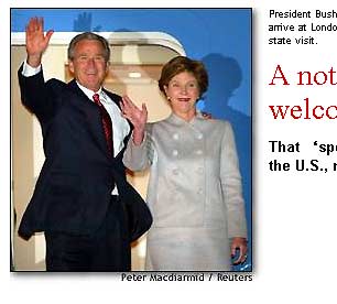 中新網(wǎng)11月19日電美國國家廣播公司倫敦報道,英國首相上周稱在歐洲正在興起“新的反美主義”,他說對了,隨著今天布什的來訪,數(shù)千英國人用言語和行動表示對布什的反對。