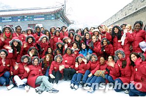 組圖:世界小姐雪中登北京八達嶺長城