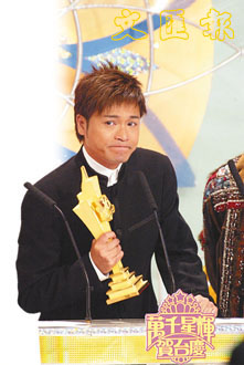 而“我最喜愛的男主角”一獎中,賽前穩(wěn)操勝券的郭晉安眾望所歸,憑借對《憨夫成龍》里“阿旺”一角的出色表演奪獎。領獎時刻他激動地感謝17年來支持他的人。郭晉安特別表示﹕“當任何人都不相信我有機會站在頒獎臺做男主角時,很感謝梁家樹(無線戲劇組高層)給予我信心!