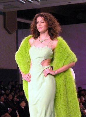 中國(guó)國(guó)際時(shí)裝周NE·TIGER 2003/2004高級(jí)皮草晚裝,湖水綠個(gè)性色系列。