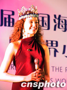 上百名海南兒童向佳麗獻(xiàn)花,并手牽手將美人引入椰風(fēng)海韻中。一位小男孩流露出的幸福笑容,令許多男士羨慕不已。佳麗們風(fēng)情萬(wàn)種,有的向歡迎的人群微笑揮手,有的不停飛吻,有的將手中的小禮物送給了海南的小學(xué)生,有的走進(jìn)人群與渴望美麗的人們合影……美麗帶來(lái)的瘋狂感染著每一個(gè)人。