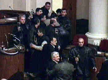 圖:格魯吉亞總統(tǒng)謝瓦爾德納澤倉促離開國會大廈