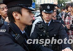 二零零三年香港特別行政區(qū)區(qū)議會(huì)選舉投票日十一月二十三日在香港十八個(gè)區(qū)同時(shí)展開(kāi),為保障選舉投票安全,警察在投票站加強(qiáng)治安管理。 中新社記者:錢(qián)興強(qiáng)