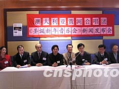 中國駐悉尼文化領(lǐng)事李金生(右3)24日在黃河合唱團(tuán)于悉尼華埠舉行的新聞發(fā)布會(huì)上說,此次音樂會(huì)對(duì)活躍僑界文化生活,使社區(qū)生活多樣化,都是非常有意義的。