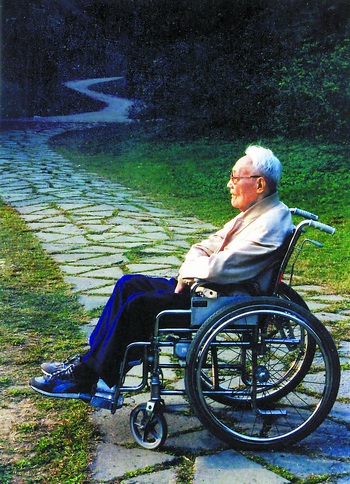 但也正是由于在完成《隨想錄》一百五十多篇寫作后,巴金仍不曾放下他那堅(jiān)強(qiáng)的筆桿,他在九十歲(1994)以后身體確實(shí)越來(lái)越顯得衰老了,不僅頭發(fā)全白,他那老年性慢性支氣管炎更加嚴(yán)重,“文革”結(jié)束后不久就患上的帕金森氏病更使他行動(dòng)受到影響,連筆也愈來(lái)愈不聽使喚;同時(shí)由于身體嚴(yán)重缺鈣,引起胸脊椎骨折和體位性血壓波動(dòng)。他在八十年代中期還可以站在特制的圈車?yán)镒邉?dòng),而現(xiàn)在只好坐在輪椅上過(guò)日子;當(dāng)然,每天幾乎有一半時(shí)間還是躺在床上。