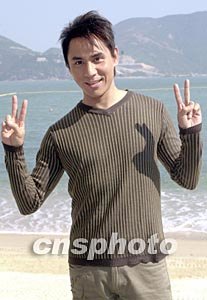 歌星黃凱芹11月26日在香港赤柱正灘為無線電視拍攝音樂劇《愛在富豪海灣的日子》外景,黃凱芹與關(guān)心妍拍完一幕親熱戲后,雙手?jǐn)[出勝利手勢(shì)。作者:鄧慶樂