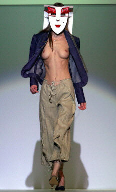 圖:中國國際時(shí)裝周上提醒預(yù)防SARS的時(shí)裝