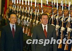 中國總理溫家寶十二月一日在北京舉行儀式歡迎德國總理施羅德訪華。中新社記者:滿會喬