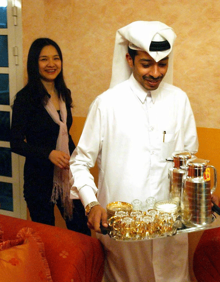 2001年7月,諸宸第一次前往穆罕默德的家鄉(xiāng)——卡塔爾。出發(fā)前,她做了一個(gè)夢,夢到自己似乎失去了所有。那種陌生感和恐懼感一下子襲來,讓她心里頓時(shí)充滿了陰影。從北京到多哈沒有直航航班,第一站要到馬來西亞吉隆坡轉(zhuǎn)機(jī)。這是他們故事開始的地方,而現(xiàn)在她第一次前往自己的婆家,卻注定要再次來到這個(gè)讓她的命運(yùn)發(fā)生重大轉(zhuǎn)折的地方。她注視著那些身著黑袍、頭裹頭巾、面紗遮臉的阿拉伯婦女,心里充滿了別樣的情緒,想起關(guān)于多哈一片沙漠草木的傳說,不知自己的旅途將如何艱辛。