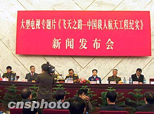 中國人民解放軍總裝備部二日在北京人民大會堂舉行新聞發(fā)布會宣布,該部組織拍攝的第一部全景式反映中國載人航天工程的大型電視專題片《飛天之路——中國載人航天工程紀(jì)實(shí)》,已經(jīng)制作完成,即將在中國中央電視臺播出。