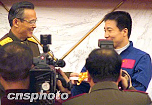 解放軍總裝備部副政委朱增泉中將、中國首位航天員楊利偉以及載人航天工程七大系統(tǒng)代表等出席新聞發(fā)布會。