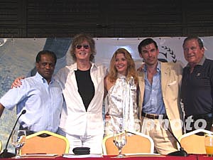 印度時代集團主席PRANEEP GUHA、知名攝影大師DICK ZIMMERMAN、暢銷書作家CANDACE BUSHUNELL、美國當(dāng)紅電視明星CLIVE ROBERTSON、著名慈善機構(gòu)主席ORG SLONIM(從左至右) 。中新社記者:王辛莉