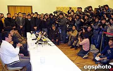柯受良兒子柯友倫(右一)、柯有謙出席了本次新聞發(fā)布會。中新社記者:湯彥俊