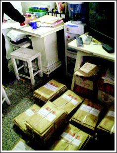 知情學(xué)生家長反映,周日他們將組織一次大規(guī)模數(shù)學(xué)考試,西安市教育局局長李尚儉聞?dòng),指派局稽查?duì)前往查處。昨日稽查隊(duì)一行4人來到尤廉家中,看到地上堆滿密封好的整袋整袋試卷,各考點(diǎn)的人陸續(xù)前來領(lǐng)取考卷。面對(duì)稽查人員的詢問,尤廉和楊益新說,他們這次考試未向任何部門申報(bào),幾年來一直是這樣做的。這次每個(gè)考生收取報(bào)名費(fèi)8元,若要他們編寫的“祖沖之杯”數(shù)學(xué)邀請(qǐng)賽資料,再加收2元。這次報(bào)名考生共有9000多人。當(dāng)聞?dòng)嵹s來的長延堡派出所副所長朱小青追問印章來由時(shí),楊益新承認(rèn)印章是私刻的。民警后來在房間電腦中發(fā)現(xiàn)這次考生實(shí)際人數(shù)竟達(dá)14919人?键c(diǎn)分別設(shè)在陜師大附中、高新一小、鐵一中等十幾所學(xué)校。記者在現(xiàn)場(chǎng)還發(fā)現(xiàn),他們印制的“2004年全國小學(xué)數(shù)學(xué)奧林匹克參賽辦法”已出爐,其中對(duì)收費(fèi)辦法、售賣材料及學(xué)生聯(lián)系辦法都有詳細(xì)要求。稽查人員隨后查扣了剩余試卷,并責(zé)令他們盡快通知各考點(diǎn)停考。但事情遠(yuǎn)沒有那么簡單。